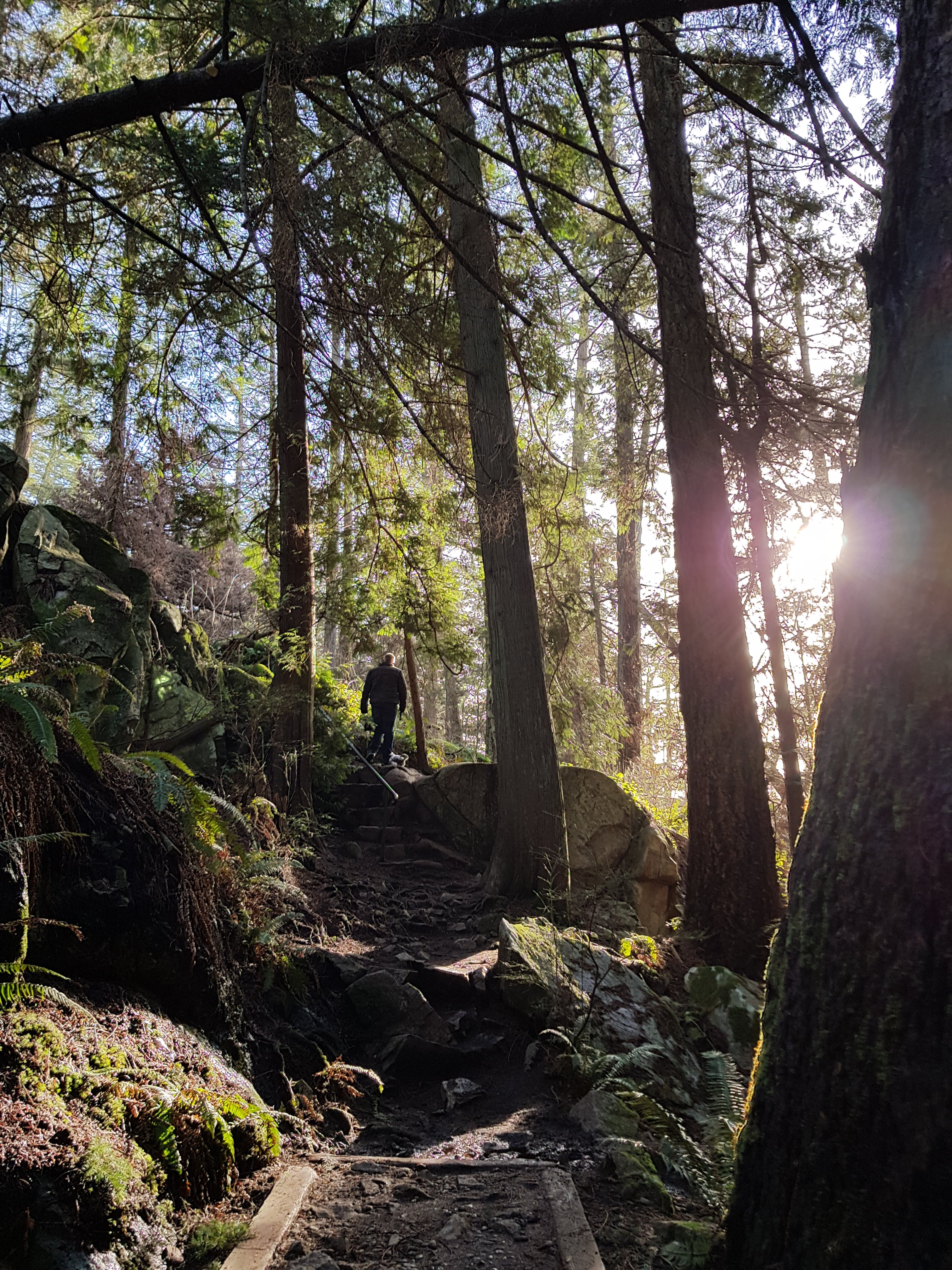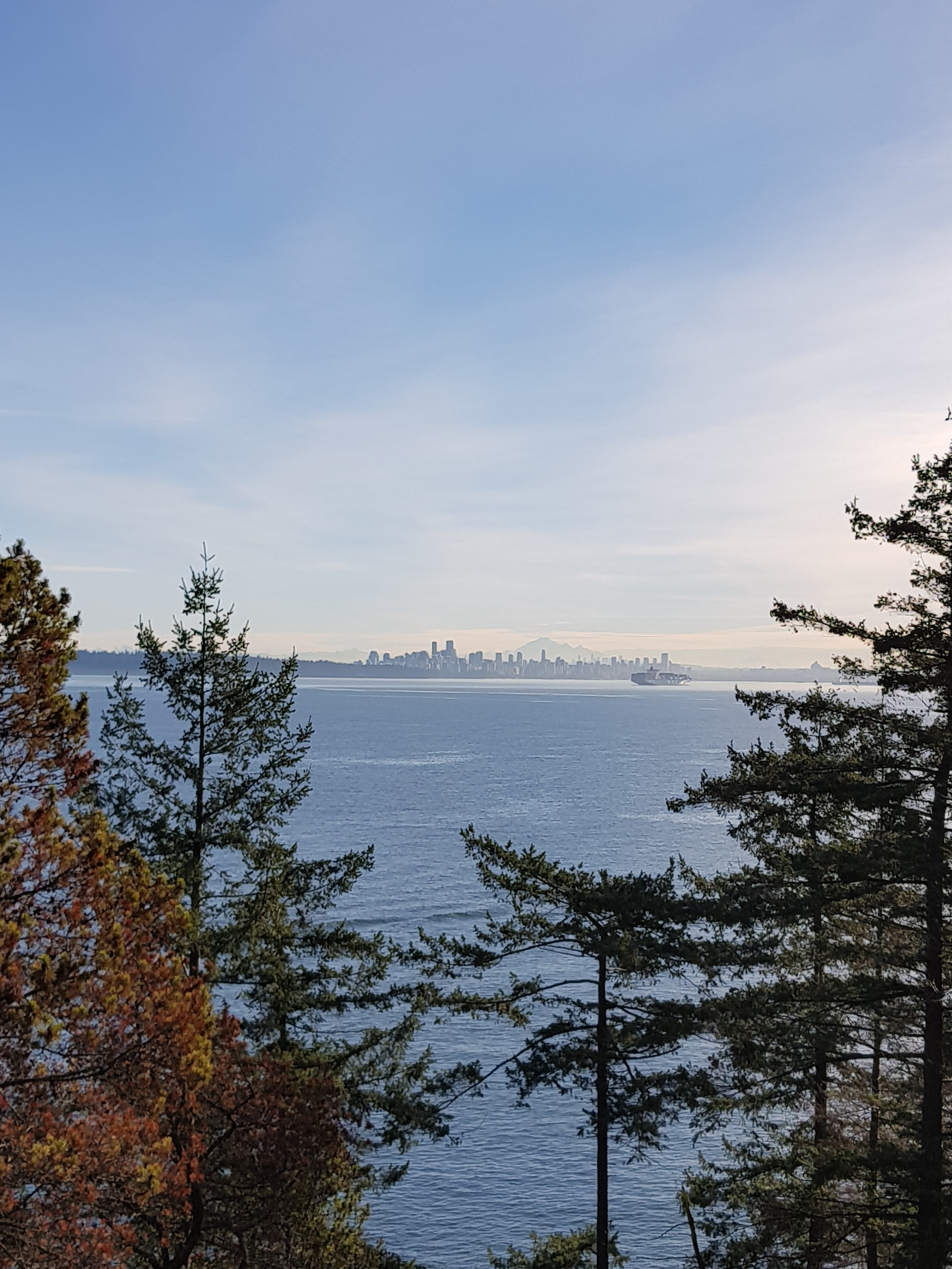 On this trail we were hiking amongst trees up to 500 years old and we were rewarded with spectacular views across to Vancouver. We also spotted a woodpecker and a cheeky squirrel.