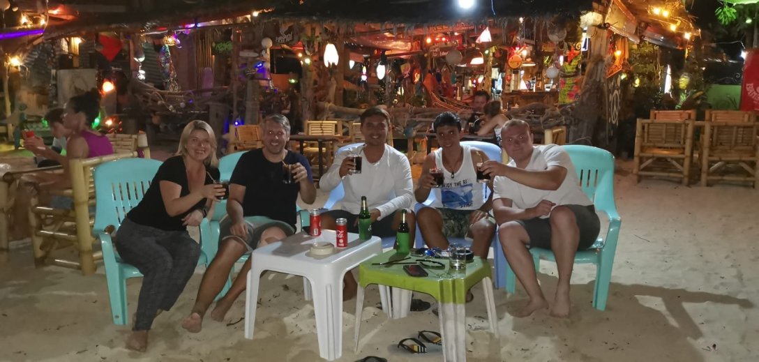 We enjoy a sundowner or two at Freeway Bar in Hin Kong.