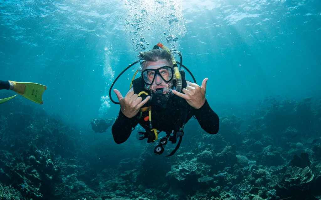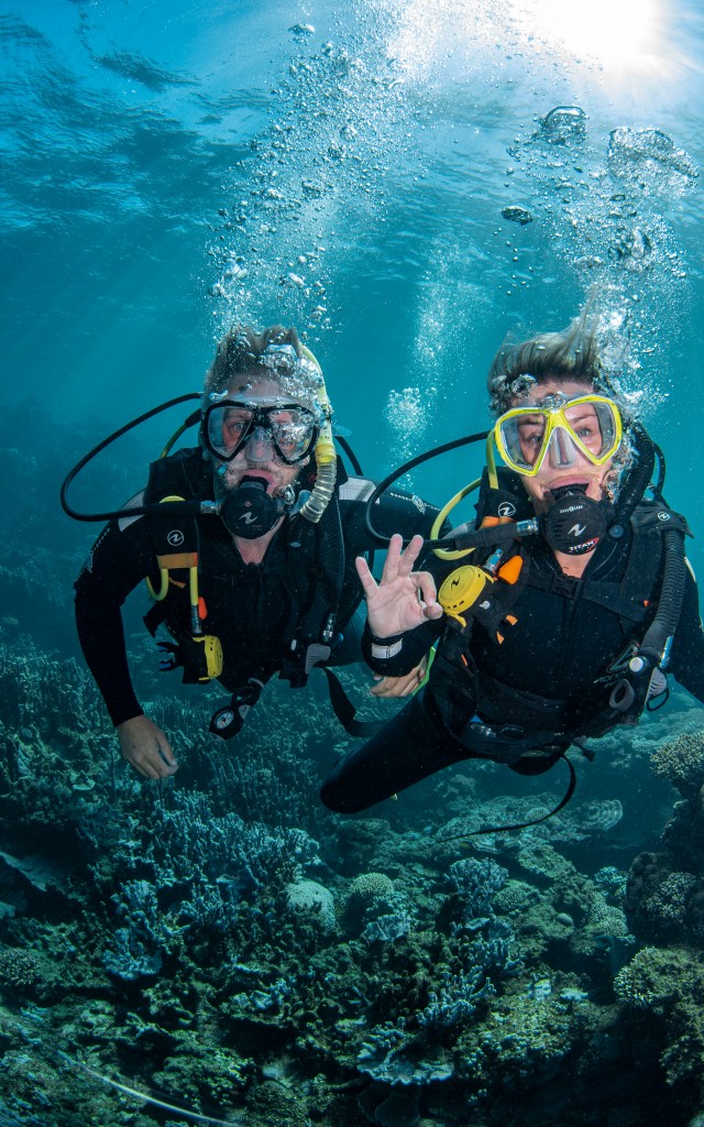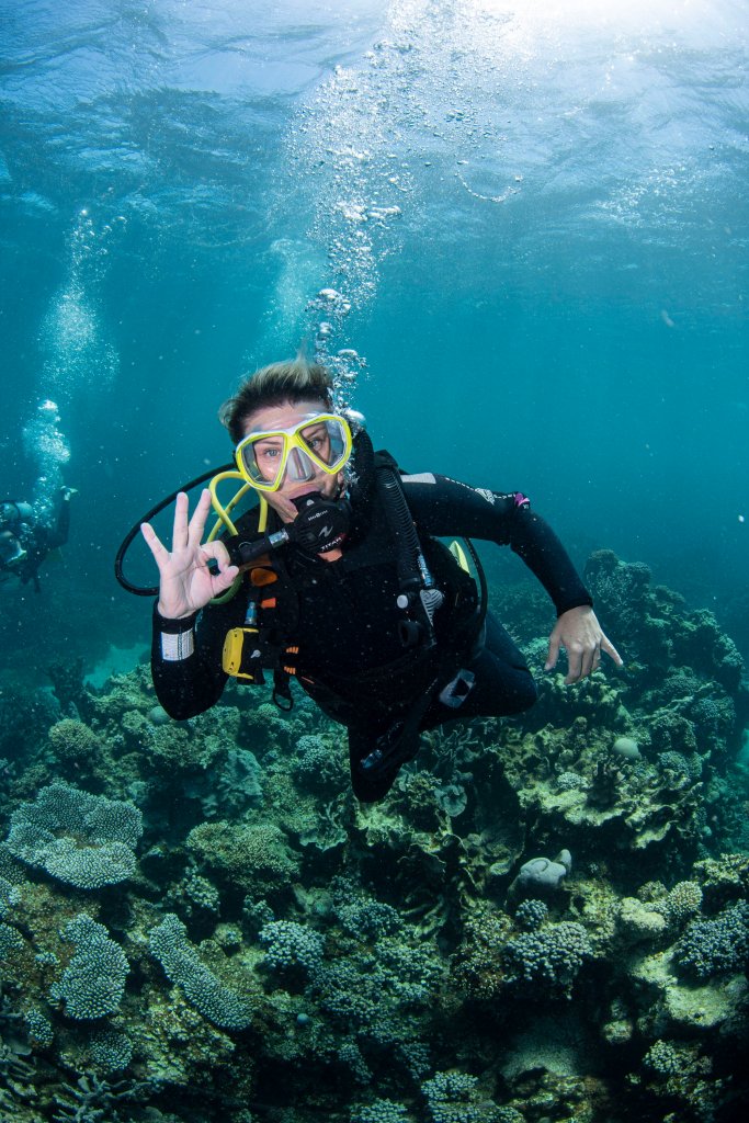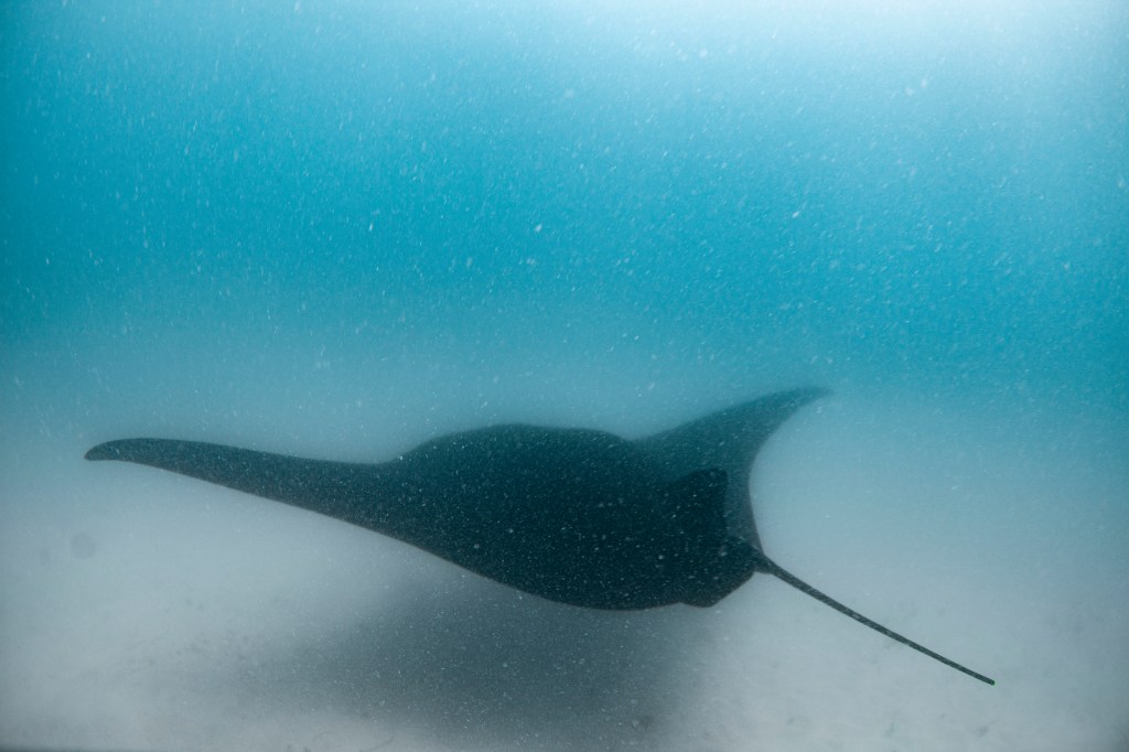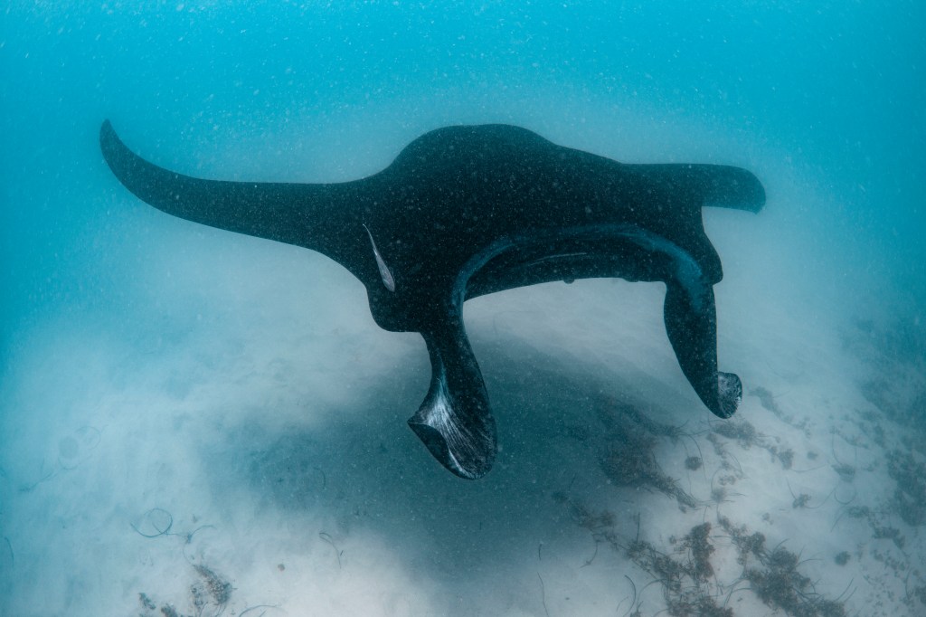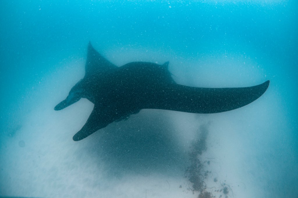 The full day tour began at 8:00 am and returned around 3pm. On realising the night before that we were some distance away we set our alarm clock for sunrise and left Exmouth at 6 am, dodging kangaroos and stray cows before checking in at the shop and collecting all the equipment we needed for the day as well as meeting the crew and other guests, there were only about fourteen guests in total, five divers including ourselves and the rest snorkeling. We had two dives on the incredible Ningaloo reef. After our first dive we went out into Bateman’s bay, a sandy bottom bay and with guidance from the spotter plane above we opportunity to snorkel with a wild Manta! Followed by a healthy lunch (with low carb options which was great) and another dive.