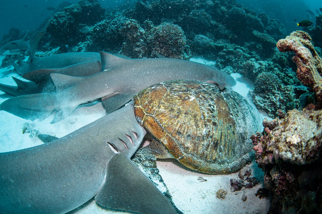 During the dives we saw lots of tawny nurse sharks, green sea and hawksbill turtles, reef sharks, a stripped sea snake, tropical fish galore including some we’ve never seen before and some gorgeous coral in the dive sites known as the Canyon and then Ashos Gap, which had an awesome fish cleaning station where we watched loads of reef sharks up to two meters in length get a spa treatment from the smaller fish.