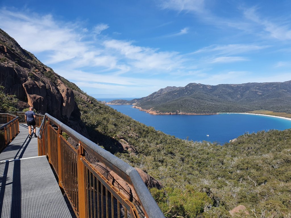 We stopped in Coles Bay for dinner before making our way to the seaside town of Bicheno, visiting the Lobster Shack for some scallops and a glass of sparkling before falling asleep to the sound of the waves. The bed wasn’t the most comfortable but after a long day walking we were happy to bunker down and slept quite well.