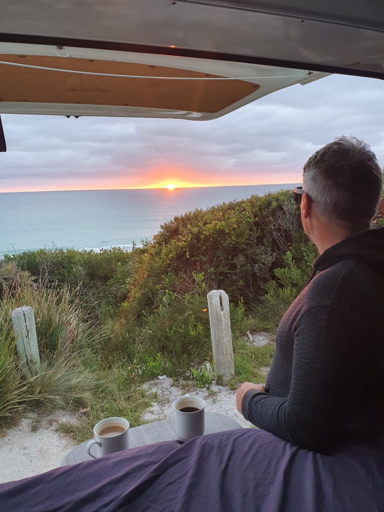 We found a great free camp site in the Bay of Fires Conservation Area, just a few metres from the white sandy beaches which we spent the afternoon exploring, along with another cold swim and in the morning we popped up to the day use area to watch the sunrise.