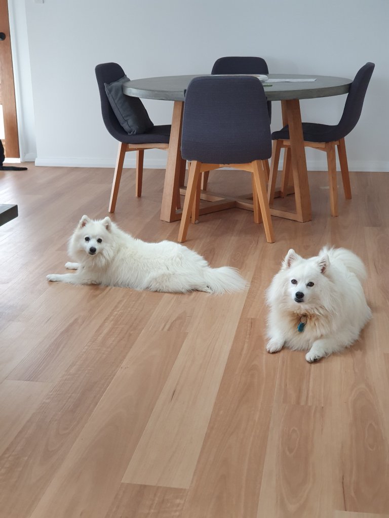 9. QLD: Our little wolf pack just outside of Caloundra, two Japanese Spitz and two cuddly cats.