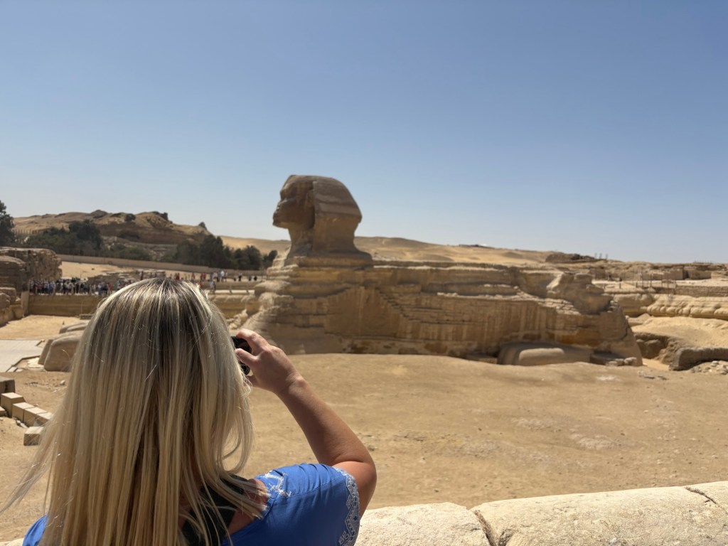 We flew Wizz Air from Abu Dhabi to Sphinx Airport in Cairo, a quick 3-hour-and-40-minute flight—though, in classic low-cost travel style, we were up at 3am for it. We hit the ground running with a full-day tour booked through Real Egypt, led by a local guide who was incredible and so knowledgeable.