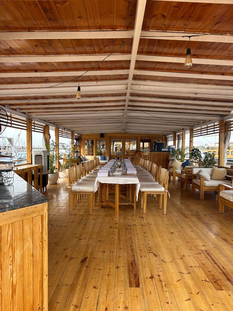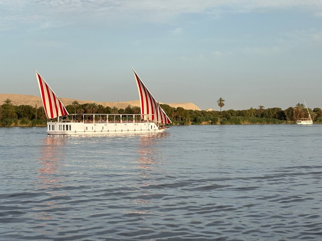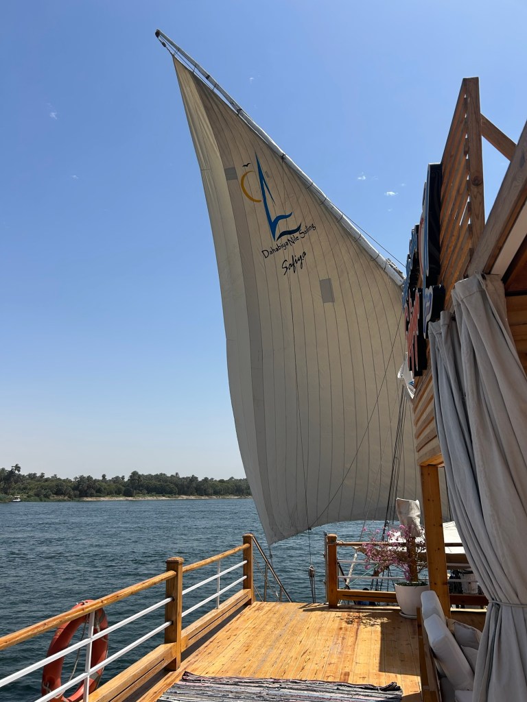From Cairo, we took a late-night flight to Luxor and finally got some much-needed sleep. The next morning, we were picked up from our hotel and driven to Esna, collecting a few of our fellow passengers along the way. That’s where we boarded our dahabiya, which is a traditional Nile sailing boat and kicked off our four-night cruise.
